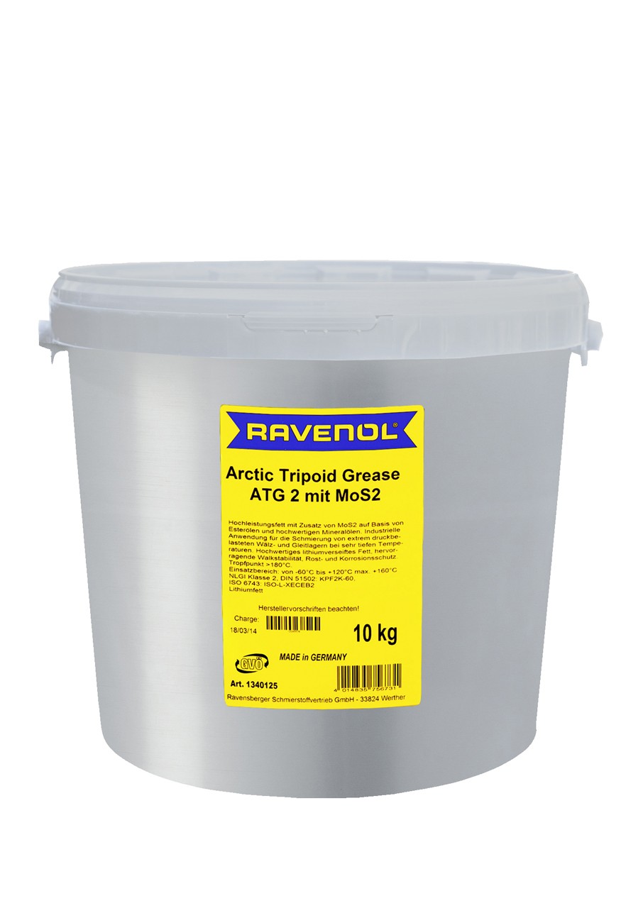Ravenol Grasso Artico Tripoidi ATG 2 con MoS2 è prodotto da oli minerali di alta qualità, esteri sintetici, alfa-poli olefine e aggiunta di disolfuro di molibdeno MoS2 utilizzando addensanti a base di sapone di litio.